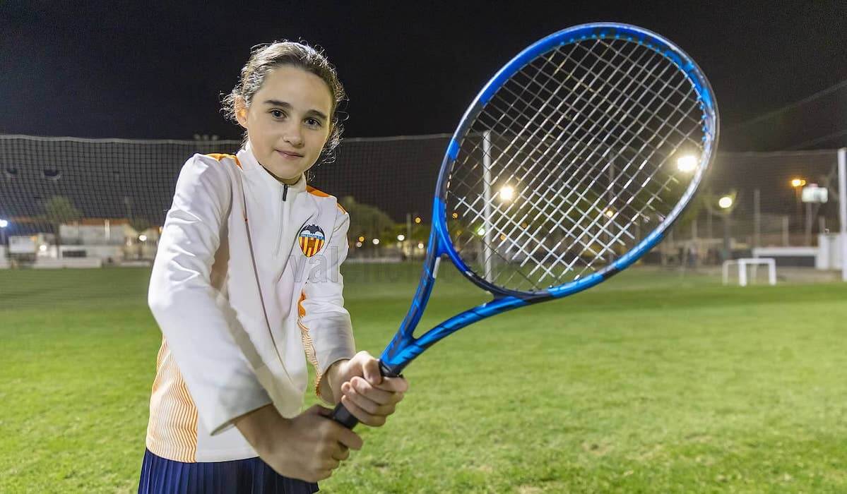 La fortaleza mental, la resistencia y la coordinación de movimientos son claves en el tenis. Es un deporte individual donde no se cuenta con el apoyo de los compañeros. También en el fútbol esa fortaleza mental es muy importante. Esa doble experiencia la está viviendo Sara Colón, también del Benjamín Femenino, que practica el tenis en el Club de Campo Peñacañada desde hace tres años y alterna durante la semana drives y regates.