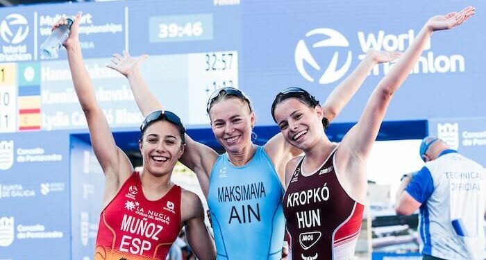 España ha conseguido siete medallas en el Campeonato del Mundo de Acuatlón celebrado esta tarde en Pontevedra, en el marco del Mundial Multideporte 2025, con doble plata en categoría élite para Marina Muñoz y Damián Suárez que, además, se cuelga el oro en categoría júnior. El húngaro Márton Kropkó también logra dos oros al ser el primer acuatleta en meta y, además, el primero de categoría sub 23. El británico Christopher Perham fue bronce. En féminas, Maksimava, compitiendo bajo bandera neutral de World Triathlon, se hizo con el oro, mientras que Jázmin Kropkó, hermana del ganador masculino, fue tercera absoluta y primera júnior.