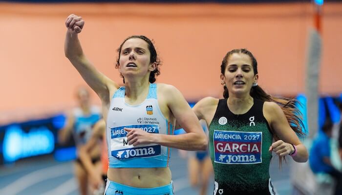 Puro atletismo. Vibrante. Enérgica. Explosiva hasta la conclusión fue la final del 1.500 del campeonato de España en pista cubierta en el Velódromo Luis Puig de Valencia. El punto de valor, con Carla Masip distinguida, fue cómo el grupo completo de atletas finalistas hizo la vuelta de honor totalmente agrupado a la conclusión de una prueba notabilísima con el aplauso y ovación de los espectadores. Se resolvió el oro y la plata prácticamente en el último metro de la prueba, en la que Marta García se veía rozando el doblete, después de haberse proclamado campeona nacional el sábado en el 3.000, pero la superó, creyendo hasta el último instante en la victoria, Carla Masip, que se adjudicó ese oro del 1.500.