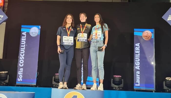Y fue suficiente, pues Andrea Medina totalizó 4.184 puntos por 4.168 de Sofía Cosculluela, 16 puntos menos, que corrió el 800 en 2:26.47. Oro para Medina, plata para Cosculluela y bronce para la malagueña Laura Aguilera, que sumó 4.058 puntos, con victoria parcial en el 800 con 2:18.14. Este podio es idéntico al del año pasado. Citemos, por último, el cuarto puesto para Paola Sarabia, que volvía a un nacional, con 3.945 puntos; el quinto de Sandra Férriz, con marca personal de 3.929; y el sexto de Paula Pérez, con 3.901 puntos.