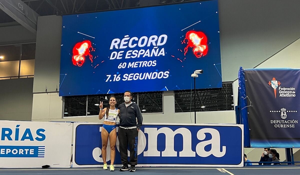 El caso es que la locura seguía con ese 7.17 en Ourense. Saltos de alegría, abrazos, brazos en forma de v de victoria, pero poco después debía afrontar la final. El reloj marcaba las 21:23 horas y se dio la salida en Ourense: carrerón de la reina de la velocidad española, que en la mejora no tuvo otra que repetir la alegría, porque se acreditó un crono de 7.16, batiéndose de nuevo a sí misma como recordwoman nacional en los 60 metros, significándose aquello con el título de campeona de España, con la plata para Sonia Molina (7.31) y el bronce para Alba Borrero (7.38).