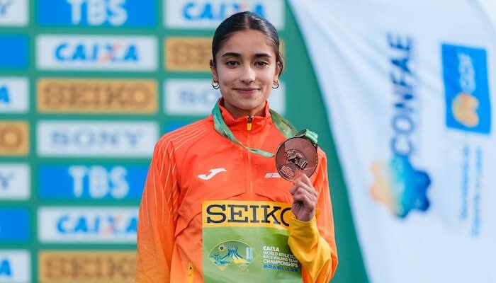 La gallega Aldara Meilán, de 19 años, fue la primera en entrar en meta y, por tanto, puntuar para el equipo, con un tercer puesto gracias a un crono de 1h35:38. Por delante de ella solo la peruana Kimberly García León, campeona con 1h35:00, y la mexicana Alejandra Ortega, subcampeona con 1h35:21, que hizo marca personal.