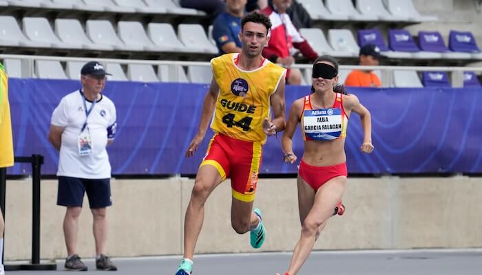 Alba García, junto con su guía Diego Folgado, se colgaron la medalla de bronce en los 100m T11 (atletas ciegas) al conseguir su mejor marca personal y parar el crono en 12”21. El oro se lo llevó la brasileña Jerusa Geber (11”81) y la plata fue para Yiming Liu (12”11). También en los 100 metros, pero de la categoría T64 (discapacidad física), Fiona pinar consiguió meterse en la final donde termino en sexta posición con un tiempo de 13”59.