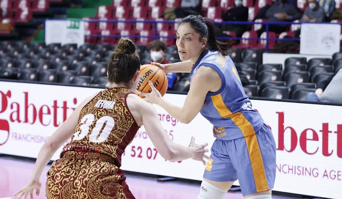 El conjunto de Rubén Burgos saltó al Palasport Taliercio con Cristina Ouviña, Queralt Casas, Bec Allen, Itzi Germán y Marie Gülich. El partido arrancaba con nervios por parte de ambos equipos. Fallos y errores en ataque que impedían que el marcador se estrenase hasta que Ndour lo hizo para las locales transcurrido minuto y medio. Valencia Basket no conseguía mover bien el balón, lo que se tradujo en un 0-6 de salida que frenaba Gülich, inaugurando al equipo. Cuando Bestagno ponía un +9 para las italianas, Burgos paraba el partido. Sin embargo, el conjunto taronja no sumaba y sí lo hacía Thornton poniendo el +11. Trahan-Davis cortaba el parcial, pero no se conseguía sumar de forma seguida. Ndour ampliaba la diferencia a 14. A Valencia Basket no le entraba nada y eso se estaba afectando también a la defensa. Fam anotaba para reducir al final del cuarto a 12 puntos.