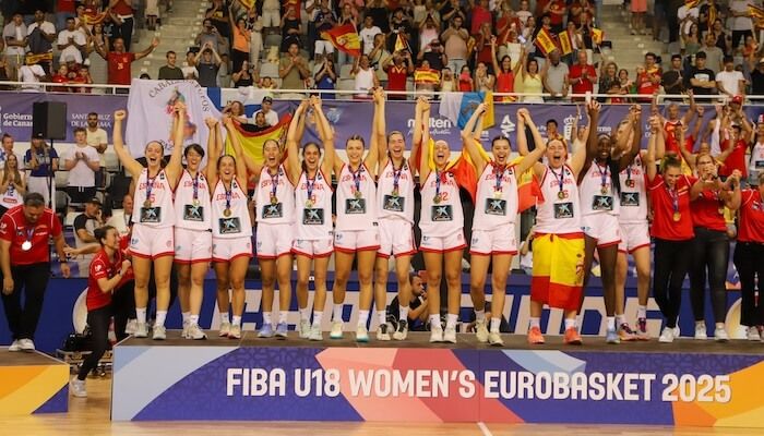 FEB.- Gina García, María Cintas, Aina Cargol, Leyre Urdiáin, Mireia Jurado, Mireya Sanz, Xenia Salzmann, Adriana Díaz, Inés García Monje, Noelia Mouriño, Sara Okeke y Nicole Domínguez son campeonas de Europa bajo la batuta de Javi Torralba. Un EuroBasket sub’18 perfecto, con siete victorias en siete partidos, derrotando a Grecia en octavos, a Serbia en cuartos, a Francia en semifinales y a Finlandia (81-72) en la gran final. ESTADÍSTICAS