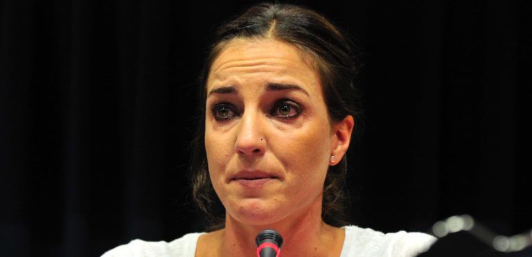 La jugadora de balonmano Eli Pinedo explica en una rueda de prensa en la sede del Comité Olímpico Español los motivos de su despedida profesional