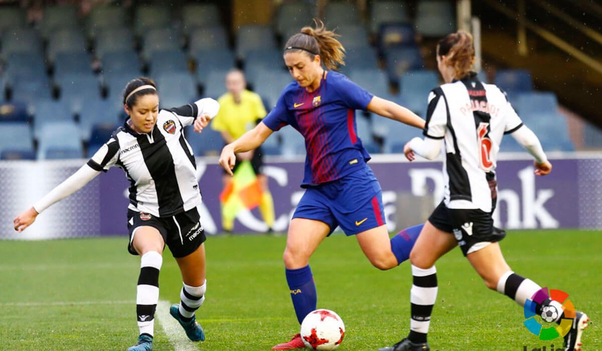 El Barcelona se proyectó con buen juego de transición, siempre incisivo, desde el mismo arranque. Y avisó pronto al conjunto levantinista con las tentativas de Torrejón y de Losada. Pero fue a los 9 minutos cuando Bussaglia le pegó duró al balón desde la frontal para batir a Noelia Ramos (1-0). Sólo cuatro minutos después, Patri Guijarro resolvió el 2-0 desde el segundo palo al servicio de un córner.