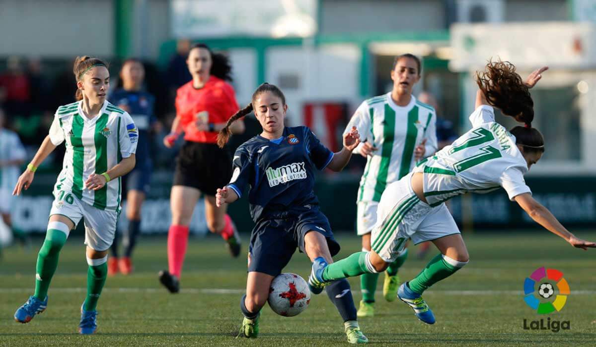 Las locales salieron ambiciosas, incisivas y pujantes sobre su campo, metiendo al Espanyol en su sector del campo sin que pudiera replicar; mucho menos apurar a la portera bética, Miriam. En la propuesta ofensiva de las andaluzas comenzaron a traducirse ocasiones y mandaron hasta cinco balones al palo: Paula Perea, Rocío Gálvez y Priscila.