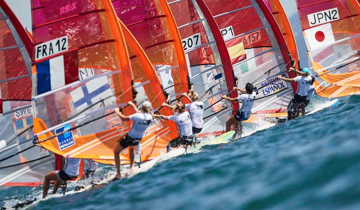 El podio provisional de los RS:X femenino lo dominan las regatistas chinas Jiahui Wu y Peina Chen, primera y segunda respectivamente, junto a la polaca Zofia Noceti Klepacka.