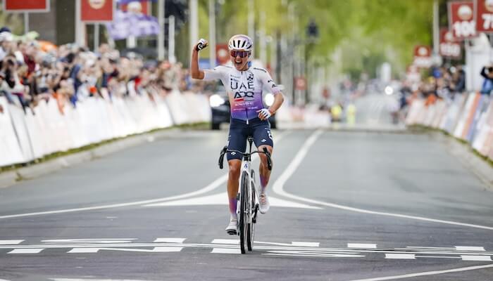 A 26 de meta llegó el turno de Paula Blasi (UAE), cuando la campeona de Europa y tercera del mundo sub’23 movió ficha. Primero se marchó con la neerlandesa Nienke Vinke, y luego se fue en solitario con 22 kilómetros para meta. Un ataque contundente de la catalana despertó sus ilusiones para imponerse en un clásica de postín.