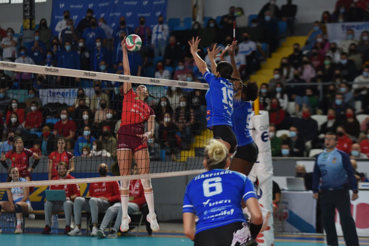 El conjunto tinerfeño se sacudió rápido la derrota. Con su ataque doblaba en el marcador a las lucenses, 10-5 cuando Valle solicitó su primer tiempo muerto. La final de la Copa de la Reina mantenía la emoción pese a que la distribución de Patricia Aranda catapultaba a su equipo administrando su renta. As Loitadoras aumentaban su intensidad pero la pegada tinerfeña seguía con su efectividad para cerrar el set por 25-14.