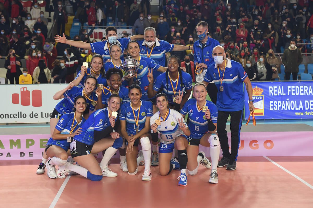 RFEVB: Sanaya Libby’s La Laguna es el nuevo campeón de la Copa de la Reina al vencer en la gran final a Arenal Emevé por 3-1 (25-18/19-25/25-14/25-14) en una vibrante y emocionante final en un repleto Pabellón Municipal de Deportes de Lugo. Las lucenses contaron con el apoyo de su público para buscar una reacción que no llegó ante el gran trabajo en distribución de juego de Patricia Aranda, designada MVP Iberdrola del torneo por su aportación en los tres días de competición, y el acierto ofensivo de sus rematadoras. Las tinerfeñas suman así su segundo entorchado del torneo del KO tras el obtenido en 2017.