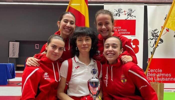 FOTONOTICIA: El conjunto español de esgrima, formado por Lucía Abajo, Silvia Gómez, Candela Lozano y Daniela Pinyol, se adjudicó la medalla de plata en espada por equipos sub’23 en el Circuito Europeo, disputado en Suiza. El equipo estuvo dirigido por la entrenadora Olga Markina.