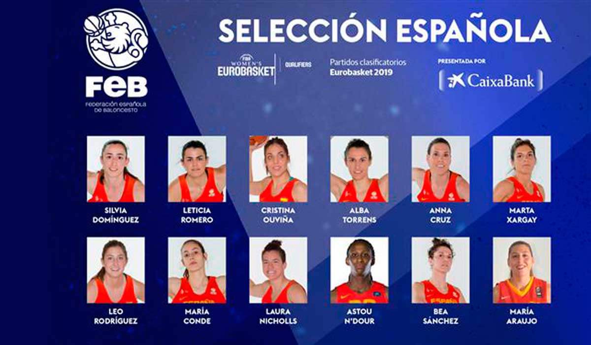 El seleccionador nacional absoluto de baloncesto femenino, Lucas Mondelo, dio este jueves la lista de convocadas para las dos primeras jornadas de clasificación para el Eurobasket Women 2019. En la convocatoria están nueve de las doce campeonas de Europa, coronadas has unos meses, con la llamada a Silvia Domínguez, Leticia Romero, Anna Cruz, Marta Xargay, Alba Torrens, Leonor Rodríguez, María Conde, Laura Nicholls y Bea Sánchez. Además, regresan a la selección Astou Ndour y Cristina Ouviña. Mondelo también llama a María Pérez Araújo, que debutará con el combinado nacional absoluto.