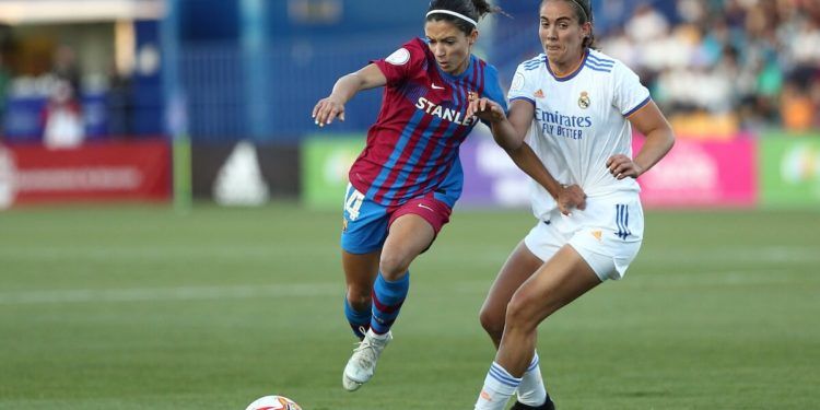 Tras perder la final de la Women’s Champions League ante el Lyon, el Barça debía reponerse para afrontar la eliminatoria ante las madridistas. Y el conjunto azulgrana lo hizo con firmeza y buscando llevar la iniciativa. Construyeron pronto opciones en ataque y tentativas sobre la portería de Misa. Antes del primer cuarto de hora ya sumaba dos balones al poste a chuts de Alexia Putellas y Oshoala. La guardameta madridista también tuvo que intervenir para evitar el gol de Barça, que llegó a los 19 minutos tras una asistencia de Alexia a Martens.