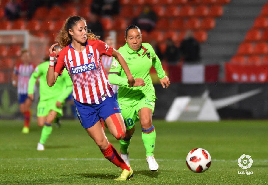 El Atlético arrancó como se esperaba: las madrileñas siempre empiezan rugiendo en el primer cuarto de hora sobre su césped (también en el ajeno). Cuestión de empuje, potencia y de meter al equipo rival en su sector del campo y lo más cerca de la portería posible. El que no empezó bien fue el Levante, subrayado como uno de los conjuntos de la zona noble y que se codea con las rojiblancas y el Barça, que empató ante el Valencia. Las valencianas más bien se vieron desbordadas por las locales.