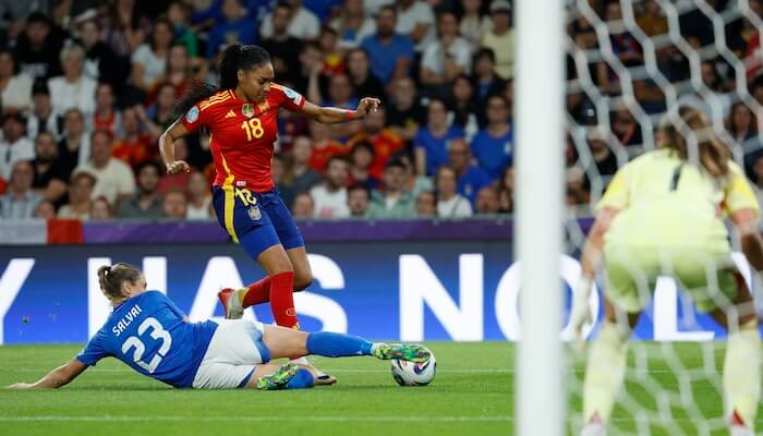 No era para menos: España estaba por detrás en el marcador por primera vez en el torneo. Pero la euforia italiana tan solo duró cuatro minutos. Athenea lideró la reacción marchándose de todas las rivales dentro del área, cedió el balón para Alexia y ‘la Reina’ completó la pared con una asistencia de tacón que la extremo culminó con un golazo.