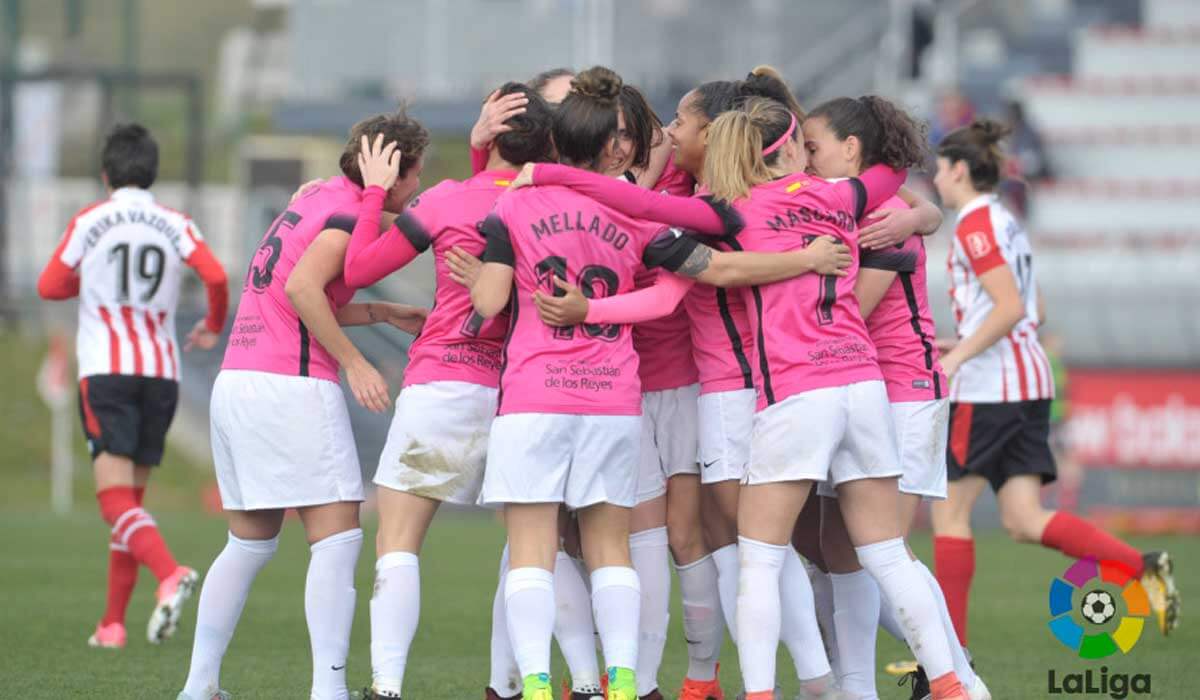 Las bilbaínas comenzaron con buenas sensaciones, buen ritmo y generando las primeras ocasiones del encuentro sobre el marco de Paola Ulloa. Esto, en todo caso, no amilanó a las madrileñas, que por medio de Jade también gozaron de una oportunidad no resuelta ante la meta de Ainhoa Tirapu. Interesante progreso del primer tiempo, competitivo en todo momento. Pasada la media hora, Eunate progresó por el costado izquierdo del ataque bilbaíno y su centro lo remató Yulema Corres; el balón fue rechazado, pero lo remachó Nekane para lograr el 1-0, que ya valió hasta el descanso.