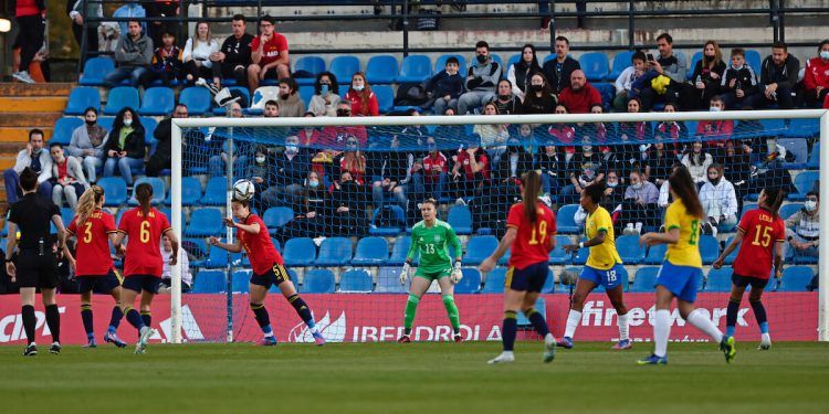 FOTONOTICIA: La selección española femenina de fútbol y Brasil empataron a un gol en un partido de carácter amistoso celebrado en el estadio José Rico Pérez de Alicante. Alexia Putellas, de falta, adelantó pronto, a los siete minutos, a España. Camino del minuto 40 del primer tiempo, la atacante sudamericana Geyse anotó en una acción embarullada en el área de Sandra Paños el tanto del empate (1-1), que dentro de un partido entretenido y con buenas fases de buen fútbol finalizó con ese marcador.