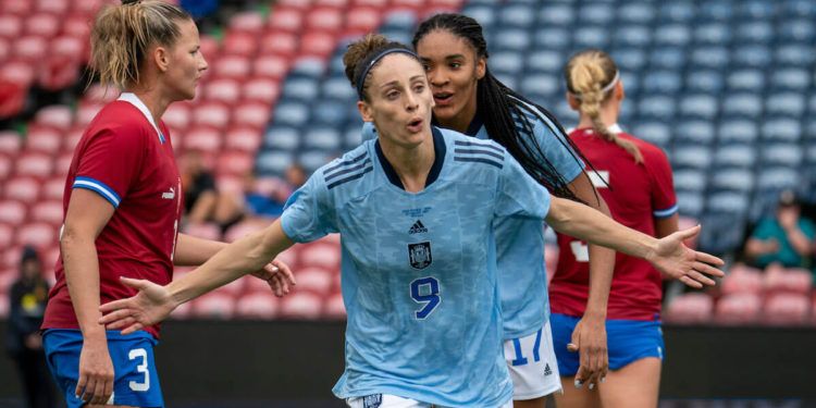 España: Lete; Sheila (Paula Tomás, m.66), Codina (Pujadas, m.46), Rocío, Carmona, Irene (Zornoza, m.76), Abelleira, Jenni (Fiamma, m.59), Cardona, Esther (Alba Redondo, m.46) y Salma (Athenea, m.59).
