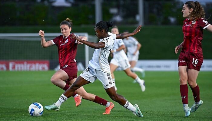 El encuentro se le puso pronto de cara al conjunto blanco, que el pasado miércoles vio cómo el Barcelona sentenciaba su undécima Liga tras imponerse en el derbi catalán (1-4). Con el único objetivo ya de asegurar la segunda plaza, el equipo de Pau Quesada se adelantó a los cuatro minutos con un tanto de la colombiana Linda Caicedo, tras una gran acción de Alba Redondo.