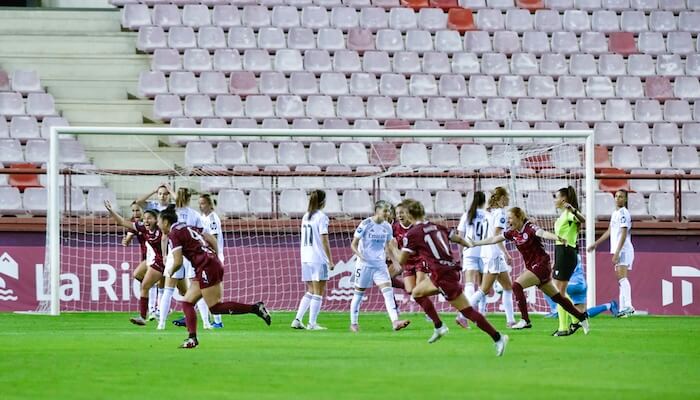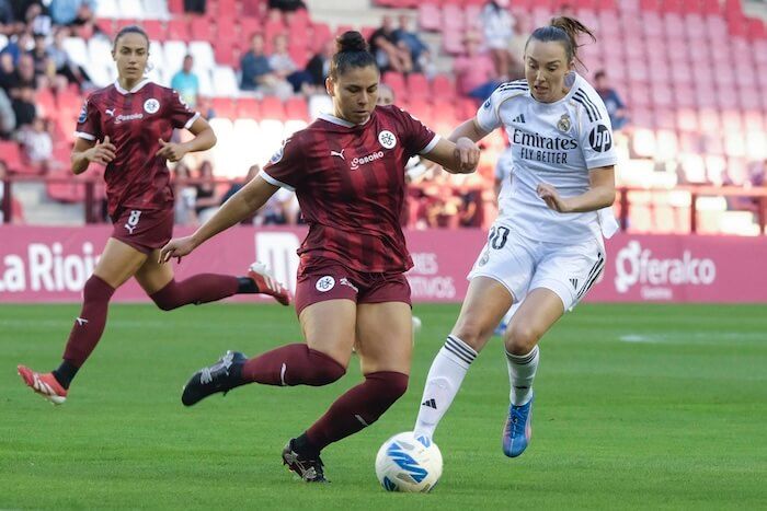 El empate consolidó el plan de partido del DUX Logroño. El Real Madrid no tuvo recursos para rebasar su entramado y cuando lo consiguió le faltó el acierto necesario. La dominicana Mia Asejo, con otro tremendo disparo que se estrelló en el larguero, estuvo a punto de adelantar al equipo vinotinto, que alcanzó la gloria en el segundo periodo en un lanzamiento de falta de Isina al palo que acabó por convertirse en el 2-1 tras dar en la espalda de Frohms.