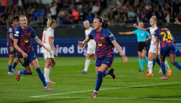 La superioridad de las catalanas se estableció como la tónica general, y el cuadro visitante, vio que tan pronto como el min.12 el marcador ya reflejaba un 2-0. Esta vez el tanto vendría tras un balón parado que remató Paredes pero que, tras besar la madera, acabaría celebrando Pajor en otra noche estelar.