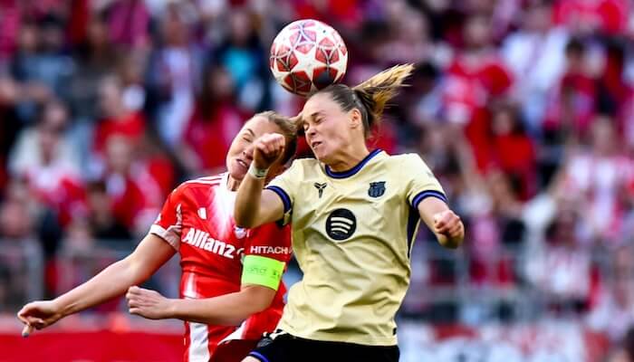 Con mucho respeto recibió el Bayern a las tres veces campeonas de Europa. El 7-1 en contra del partido de la fase liga -la última derrota del equipo alemán esta temporada- influyó seguramente en el planteamiento del español José Barcala, que cedió el balón al conjunto azulgrana y plantó la defensa en su propio campo, buscando sus opciones a la contra con dos puñales como Bühl y Harder en ataque.