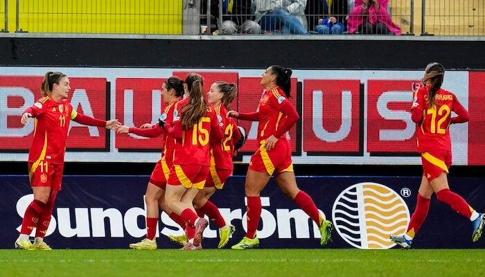 Fue el primer aviso de las anfitrionas, que intentaban incomodar a España con una agresiva presión y un buen posicionamiento sobre el campo para no dejarle huecos. Pero, pese al ímpetu sueco, España pronto se hizo con la posesión del balón. Poco a poco, España superaba la línea férrea de Suecia, que defendía con seis futbolistas.
