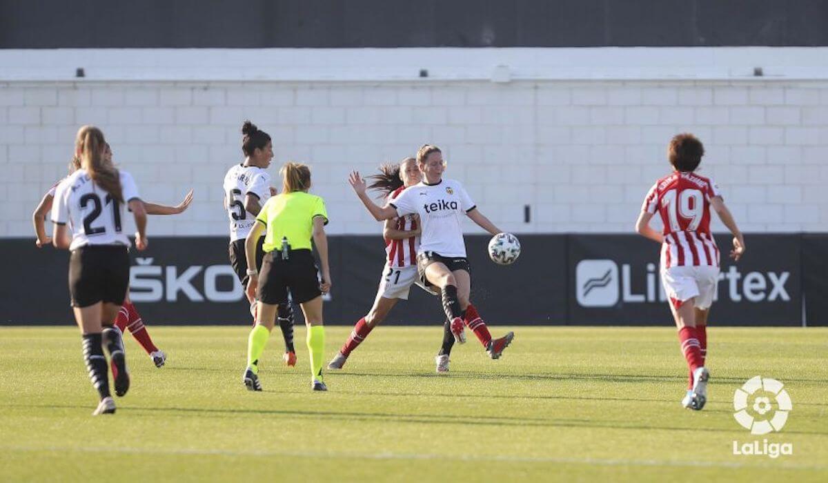 El Athletic, bien estructurado atrás, tuvo escasa incidencia con balón. A los nueve minutos, armó una contra con Erika pisando área y buscando el pase hacia Lucía, que mandó fuera. Poco sustancial hizo más hasta el minuto 40, cuando Eunate conectó con Erika, Sandra no cerró esa conexión, y Erika buscó el chut desde fuera del área, que llegó a tocar en una jugadora valencianista, y, aunque sin potencia, botó ante Noelia Gil, que no acertó en su decisión de cómo repeler el balón, que se fue dentro para el 0-1.