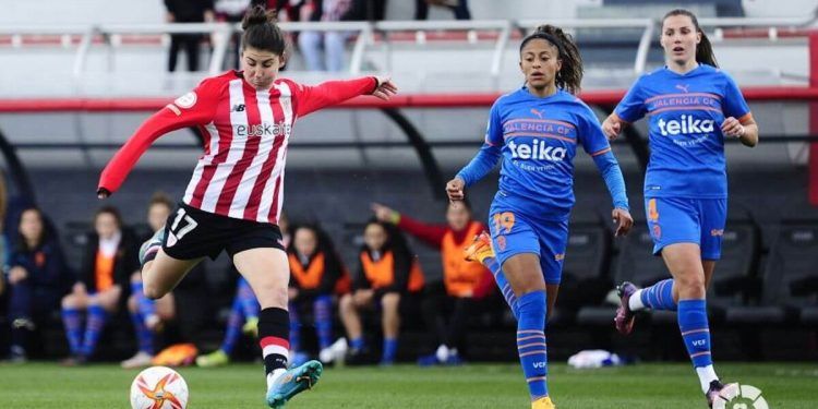 Consiguió ventaja en el marcador de forma tempranera el conjunto valenciano, de azul en Lezama. Solo cinco minutos pasaron desde el arranque cuando Candela Andújar, perfilada a la derecha en el medio campo, buscó en largo hacia la izquierda para la carrera de Asun Martínez. La atacante alicantina acomodó el balón, encaró en velocidad, se hizo espacio al borde del área bilbaína y con la zurda mandó cruzado el balón para conseguir un bonito 0-1. No se definió el primer cuarto de hora de juego por la superioridad de un equipo sobre otro. Cierto que el Athletic sostenía mayor posesión de balón y que el Valencia, bien posicionado, minimizaba espacios, presionaba bien tras pérdida y buscaba contras. Con esos argumentarios, las locales fueron ganado peso y Lucía firmó la primera tentativa, que despejó Enith. Contestaron las locales: en el 19, Jansen chutó desde medio campo ante el avance de la posición de De la Nava y con el bote final el balón se fue al larguero.