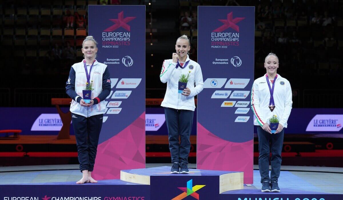 Asia D’Amato ha ganado la primera medalla de oro en los European Championships Munich 2022 en la final individual femenina, All Around, de Gimnasia Artística. Con una puntuación de 54.732 la italiana acabó por delante de la británica Alice Kinsella, que acabó con 54.132, y su compatriota Martina Maggio, que consiguió 53.965 puntos. La primera española ha sido Alba Petisco, que ha finalizado duodécima con 52.132 puntos.