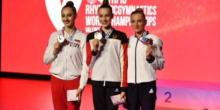 En mazas junto a la alemana se han subido al pódium la búlgara Boryana Kaleyn y la ucraniana Viktoriia Onoprienko, que escalaba una posición tras ser aceptada la reclamación de su puntuación.