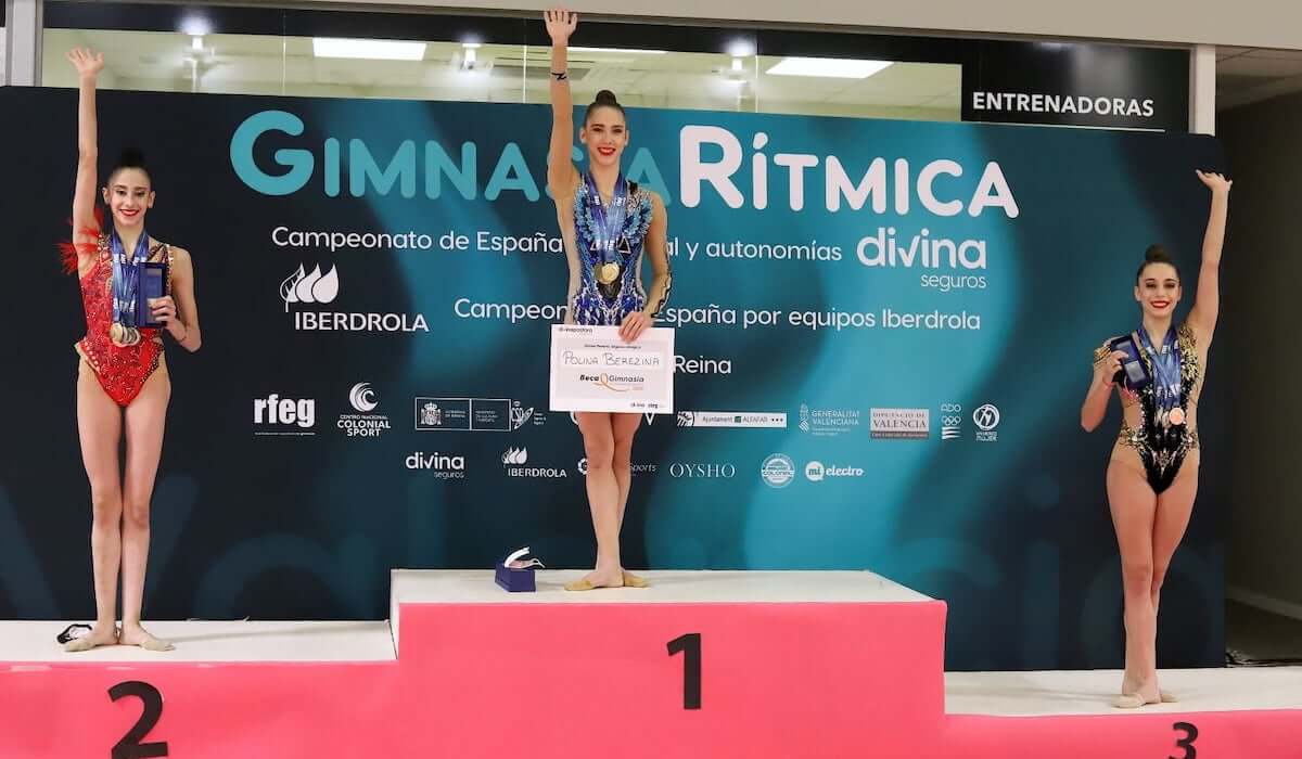 Polina Berezona, gimnasta del GR Torrevieja, se proclamó campeona nacional tras imponerse en la categoría honor sénior del campeonato de España individual de gimnasia rítmica celebrado en Colonial Sport. Lucía González, del CG Calpe, se coronó en la categoría honor júnior y Judit Carmaniú, del Club Mabel de Benicarló, se colgó el oro en la categoría júnior.