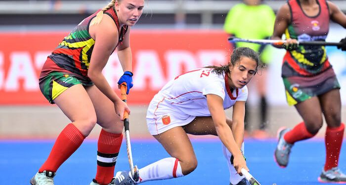 España se hizo con el control del partido desde el inicio y rápidamente se pudo adelantar en el minuto 9 de juego, con una gran jugada individual de Clara Barba que culminó con un gran coreano que se coló en la portería chilena. (1-0). Las de Mar Feito siguieron insistiendo y tan solo un minuto más (10`) Teresa Lima aprovecho un rechace tras un Penalty córner muy bien lanzado para las españolas para poner el segundo en el electrónico. La misma Teresa Lima, a tres minutos de finalizar el primer cuarto, recibió una gran bola en el interior del área de Zimbabue y después de un gran giro pudo definir y superar a la portera contraria por debajo de las piernas (3-0).
