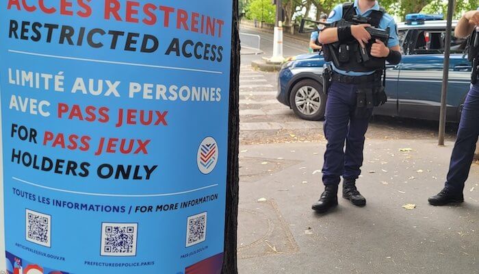 Un exigente control policial impide al acceso a los principales puntos emblemáticos de la ciudad para turistas, personas no acreditadas o que no posean el código QR. Un mecanismo que permite a residentes y trabajadores de la zona poder circular por las inmediaciones de sitios cercanos como la Torre Eiffel o el Museo del Louvre. Los peatones o ciclistas pueden transitar por esta zona con el código QR correspondiente, un pase digital obligatorio para las personas mayores de 13 años y aprobado previamente tras una investigación administrativa.