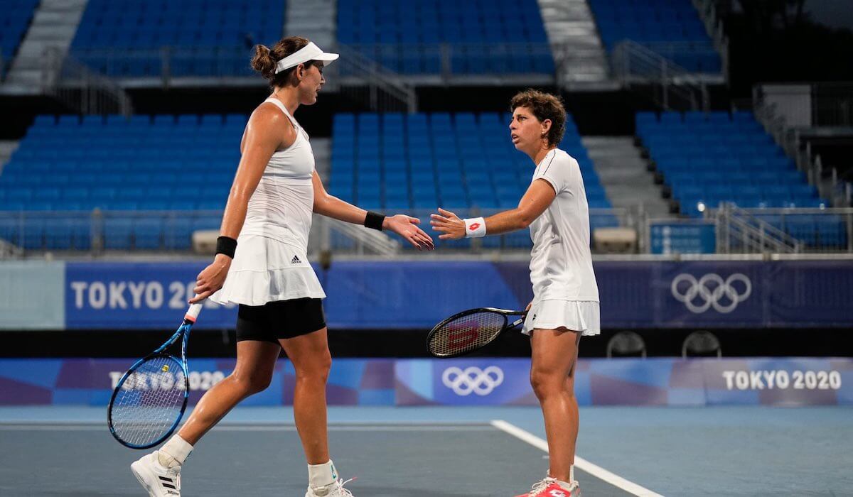 FOTONOTICIA: En el cuadro de dobles femenino de tenis de los Juegos Olímpicos de Tokio 2020, España se quedó sin representación. Garbiñe Muguruza y Carla Suárez tuvieron un match point, pero al final cayeron ante las suizas Belinda Bencic y Viktorija Golubic por 3-6, 6-1 y 11-9. Por su parte, Paula Badosa y Sara Sorribes perdieron ante las checas Krejikova y Siniakova por 6-2, 5-7 y 10-5. Foto: COE
