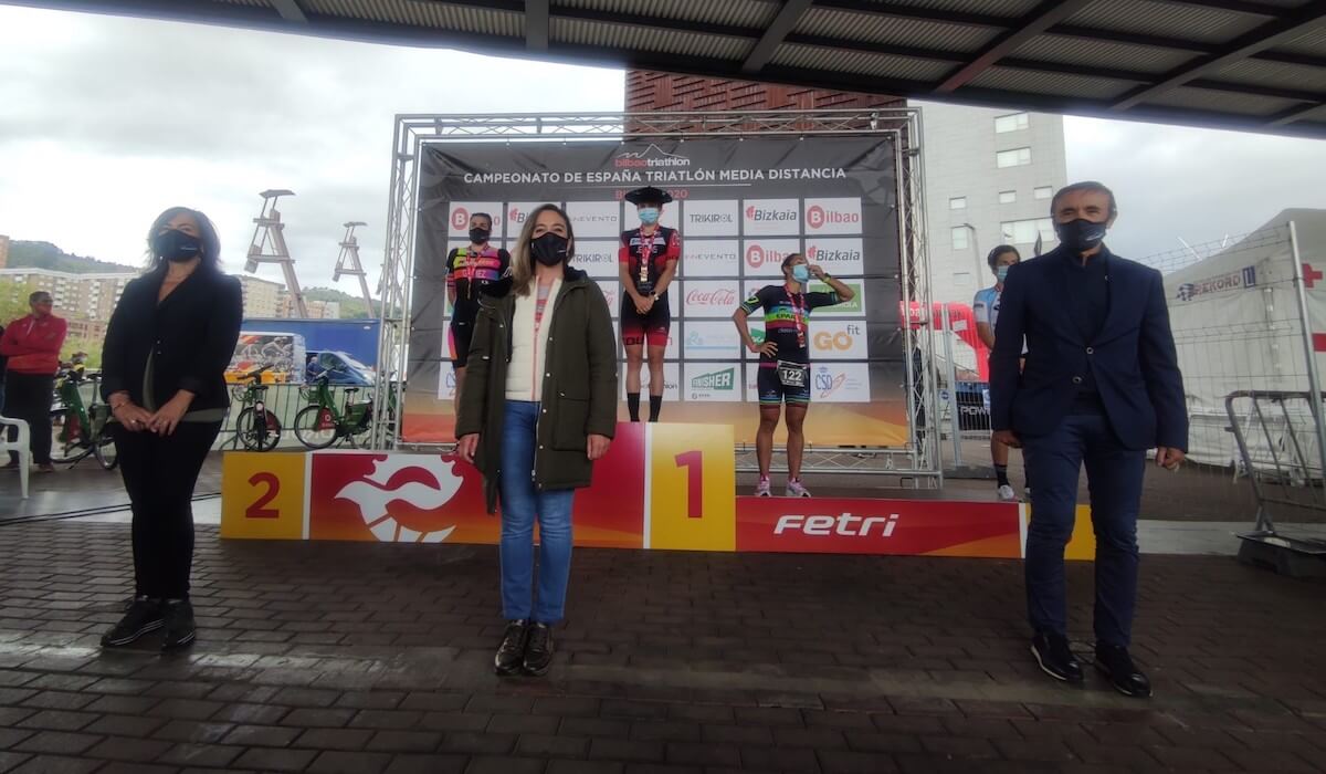 La victoria femenina fue para Anneke Jenkins, y en segunda posición, proclamándose Laura Gómez brillante campeona de España de Triatlón MD 2020, en su primera participación en la distancia al igual que la ganadora de carrera. La tercera posición y medalla de plata en el campeonato era para Judith Corachán, del Tri CBM; y cuarta plaza, con bronce nacional, para Gurutze Frades, representando a Mugarra Triatloi Taldea. La jornada se completó con la participación de 400 deportistas más en Grupos de Edad que aportaron de nuevo todo su esfuerzo y sacrificio disfrutando de un campeonato celebrado de nuevo con exigentes medidas de seguridad valoradas y reconocidas por los deportistas.