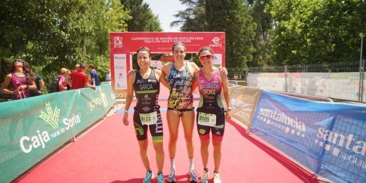 FETRI: El Campeonato de España de Duatlón Cros puso el broche de oro a un intenso fin de semana de competiciones en la localidad soriana de Almazán, con victorias de Laura Gómez (1.28:16), de Saltoki Trikideak, y de Sergio Correa, de Isbilya – Slppy Joe´s (1.14:07). Una jornada que, una vez más estuvo marcada por el calor. En féminas Gómez consiguió doblete tras el oro del sábado en triatlón cros, mientras que Correa se impuso en una prueba apasionante al ídolo local, Enrique Fernández Pinedo. De nuevo se repartieron plazas en todas las categorías para el Campeonato de Europa Multideporte Bilbao-Bizkaia del próximo mes de septiembre.