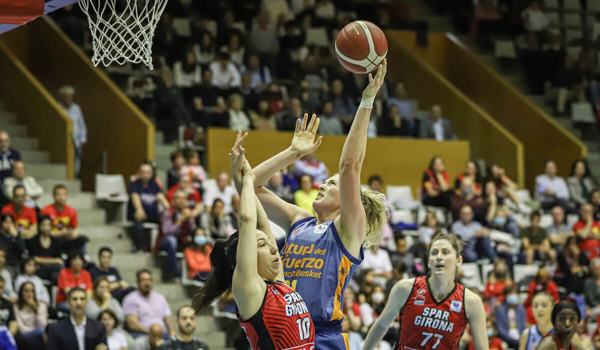 Valencia Basket exprimió bien el último cuarto para acabar logrando una buena renta, de doce puntos, en su visita a Spar Girona (49-61) de cara al partido de vuelta de semifinales de la Liga Femenina Endesa. En Fontajau, fue encuentro en el que tuvieron especial rango las defensas sobre las ataques. La estadística anotadora fue baja en ambos equipos en el recorrido, pero esa mejor gestión de Valencia en el último periodo, que llegó a gozar de una renta de +16, acabó con esos doce puntos de cara a la vuelta en la Fonteta, donde se concretará el billete para la final por el título de liga, si bien llega con esa ventaja el conjunto valenciano. En la otra semifinal, Perfumerías Avenida ganó a domicilio a Cadí La Seu (66-73).
