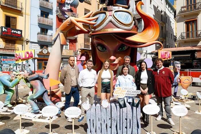 Las pilotos valencianas Marta García y Nerea Martí, junto con la fallera mayor Elia Civera y el presidente de la Falla David González, han colaborado con la comisión en la plantà y han descubierto los detalles del monumento, diseñado por Paco Camallonga y construido por el artista fallero Paco Giner. En la presentación ha participado también el vicepresidente de la Generalitat Vicente Barrera, el director general del Circuit Nicolás Collado y el director adjunto Bernardo Bonet.