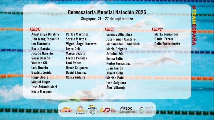 En la principal competición internacional desde París 2024 estarán presentes los dos campeones paralímpicos españoles en aquella cita, Anastasiya Dmytriv e Íñigo Llopis, así como los subcampeones Marta Fernández, Núria Marquès y Toni Ponce; y los medallistas de bronce María Delgado, Enrique Alhambra, Teresa Perales, Miguel Luque, Sarai Gascón, José Antonio Marí, Óscar Salguero, José Ramón Cantero y Emma Feliu.