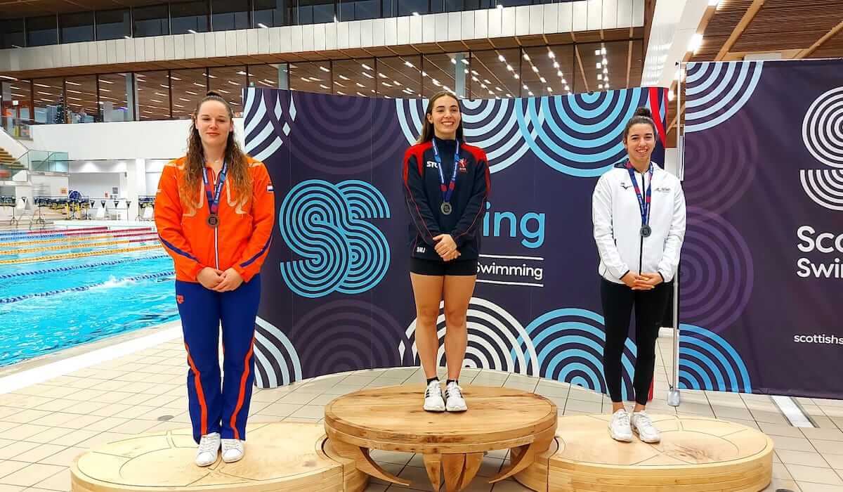 FOTONOTICIA: Valeria Antolino cerró la participación española en el Scottish Open Absoluto de Edimburgo de saltos con una medalla de plata en el trampolín de 3 metros. Acabó segunda con 241.45 puntos destacada frente a la holandesa van Duijn (2ª), y solo cediendo ante la olímpica Scarlett Mew Jensen.