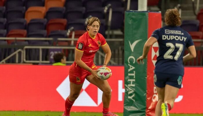 España debutó con excelente pie en el suntuoso Kai Tak Park, que se estrena en este cincuentenario del torneo en la antigua colonia británica, ya que una larga posesión de dos minutos, con el oval viajando de lado a lado del campo, concluyó con el ensayo de Juana Stella contra Estados Unidos.