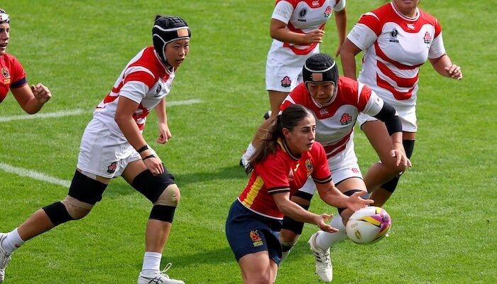Su dominio en melé permitió a Japón montar una plataforma de ataque en la zona de veintidós en su primera jugada de ataque, la tercera línea española quedó atrapada en la formación para ayudar en el empuje y la centro Haruka Hirotsu tuvo tiempo para mandarle un pase largo a Sora Nishimura, que posó el 0-5.