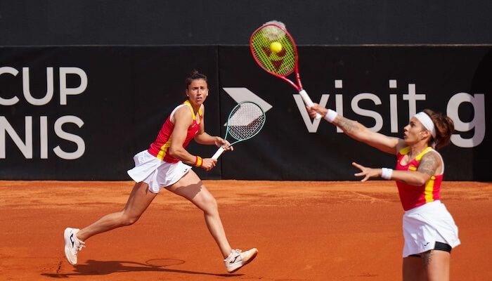 La jornada ha arrancado con el triunfo de Sara Sorribes y Aliona Bolsova sobre Veronika Erjavec –sustituta de Kaja Juvan– y Nika Radisic 6-4 6-3, en la que era su primera comparecencia juntas sobre una pista. En un igualado encuentro lleno de alternativas, la pareja española ha sido capaz de levantar un 0-40 en contra con cuatro iguales en el primer set.