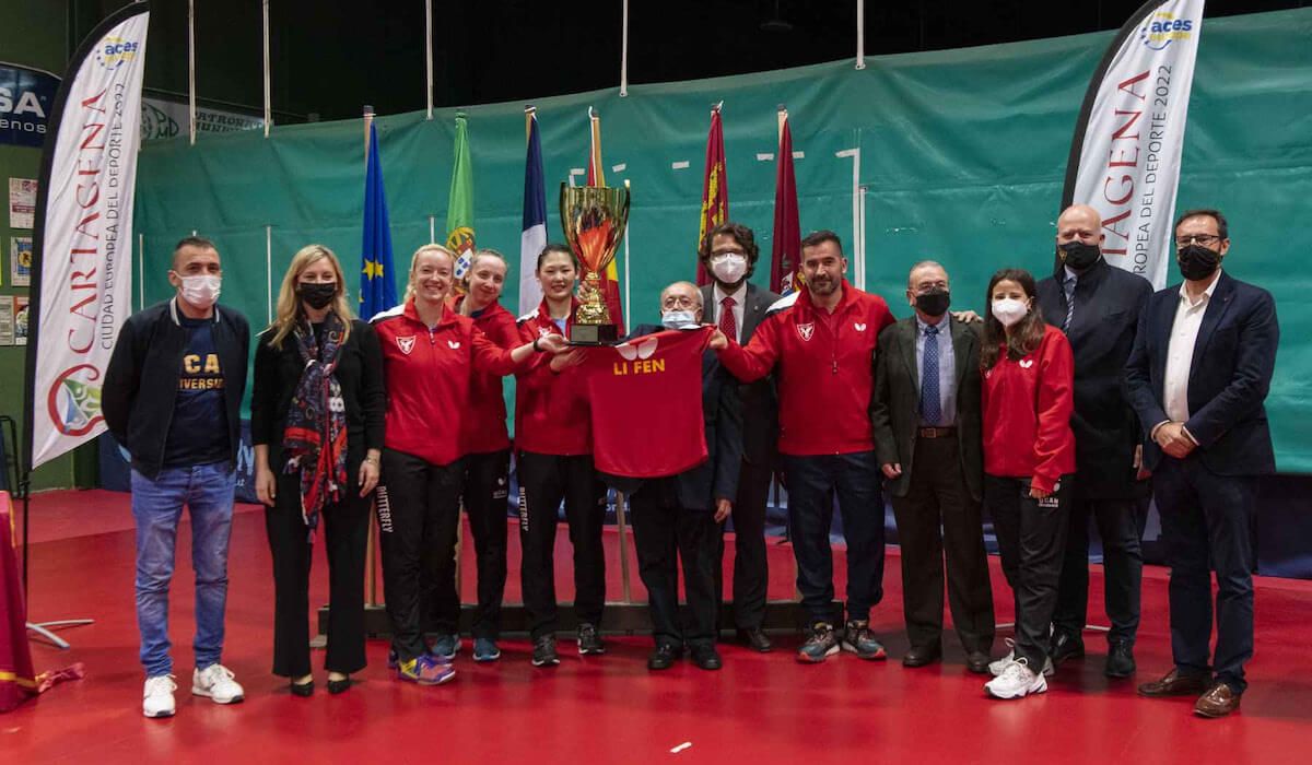 El UCAM Cartagena TM recibió su cuarta Copa de Europa de manos de Galia Dvorak, que acudió en representación de la ETTU, acompañada por las diferentes autoridades locales y el presidente de la RFETM, Miguel Ángel Machado.