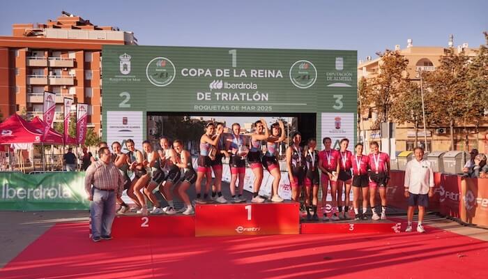 El Náutico de Narón conquistó la Copa de la Reina Iberdrola de Triatlón en Roquetas de Mar en una jornada de competiciones por equipos contra el reloj y en las que el Peñota Dental Alusigma se adjudicaba la Copa del Rey. También tuvieron lugar los Campeonatos de España de Triatlón CRE Talentos, primeras jornadas de triatlón en la Liga Talentos 2025, reservada a las categorías cadete y juvenil, en las que se imponían en categoría femenina el Club Deportivo Delikia, y en la masculina el Cidade de Lugo Fluvial. Los resultados de la Copa de la Reina Iberdrola, Copa del Rey y Copa Federación Femenina y Masculina se pueden consultar aquí; y las de los campeonatos de España de Triatlón CRE Talentos, aquí.