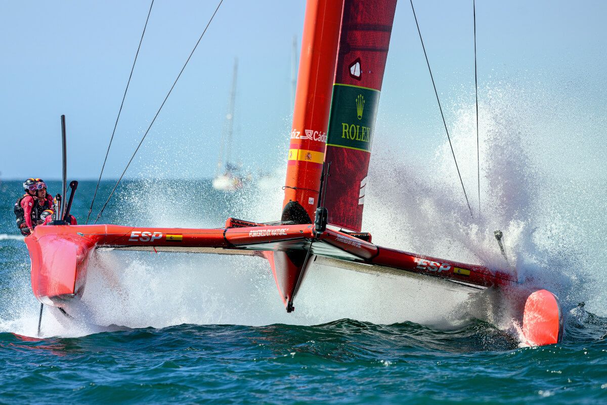 El viento comenzó a bajar y el tiempo se acababa. Mientras, por delante, Canadá, Australia y Gran Bretaña sacaban casi un tramo a resto de la flota. se veía claro que no iba a ser posible acabar la regata porque el reloj corría más que los F50.
