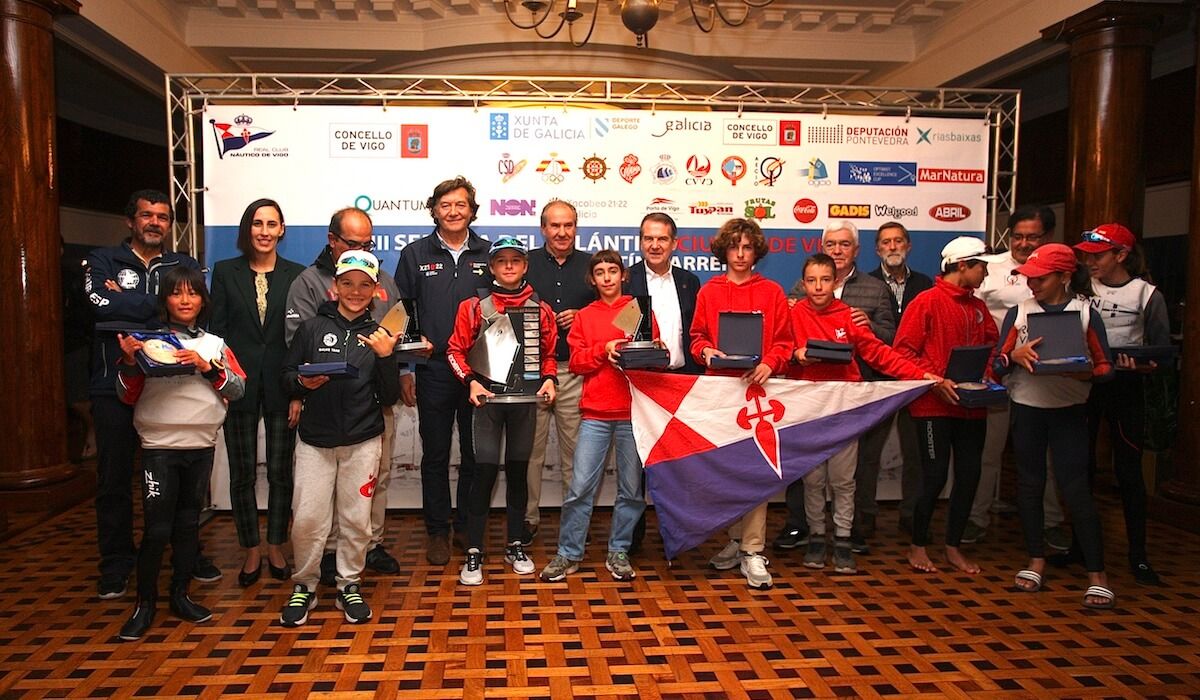 Tras el tiempo de protestas, la entrega de premios congregó al presidente del club, José Antonio Portela, al alcalde de Vigo, Abel Caballero, al edil de Deportes, Manel Fernández, y al secretario xeral para o Deporte, José Ramón Lete, además de la diputada provincial, Ana Laura Iglesias y representantes de la clase, del Clube de Vela de Viana do Castelo y de la Real Federación Gallega de Vela, entre otros.